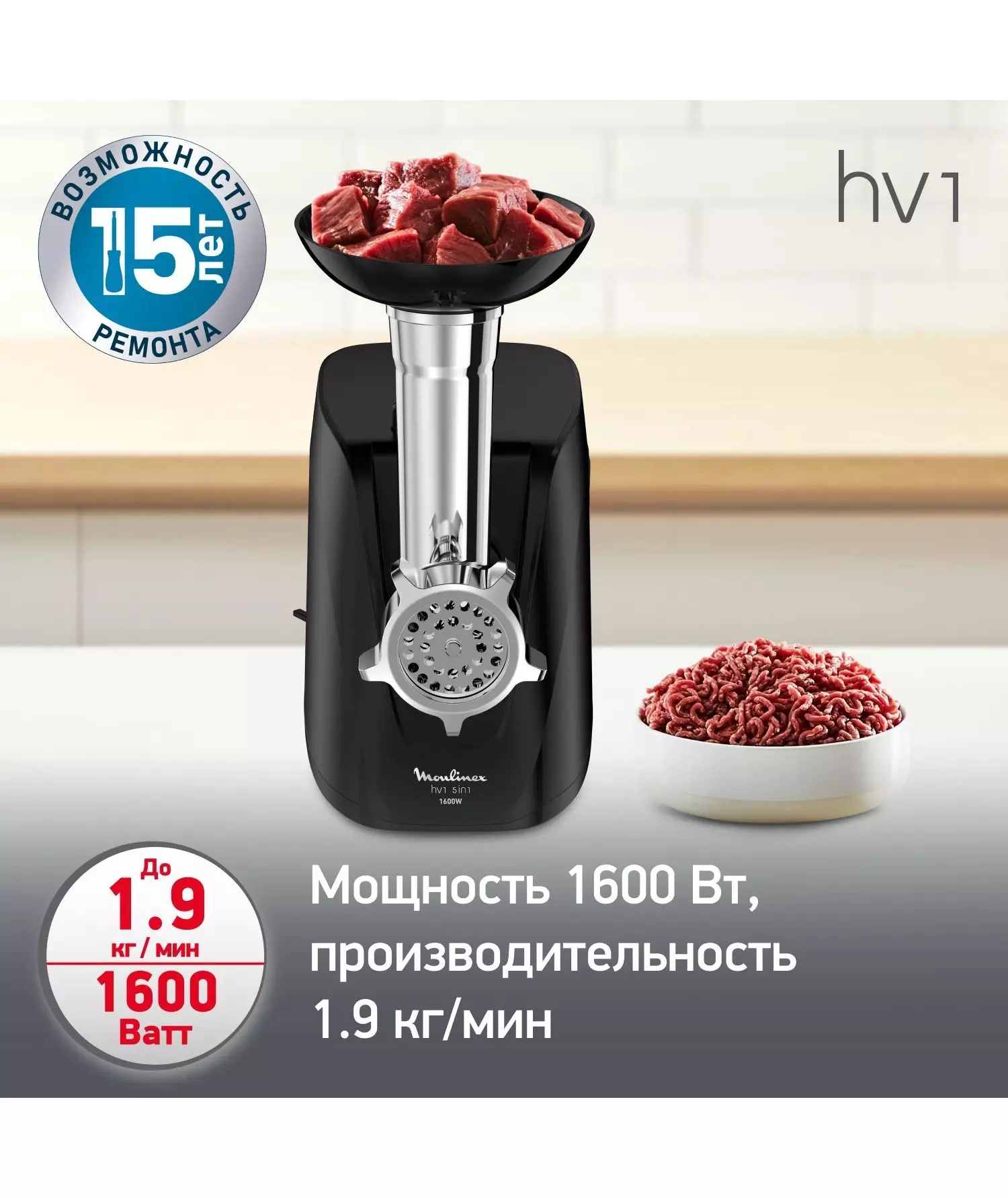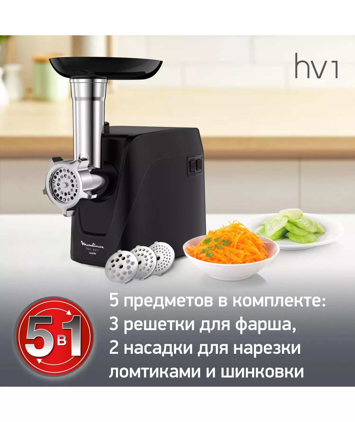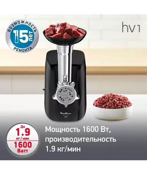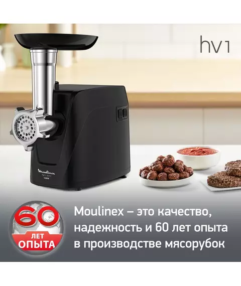 Мясорубка Moulinex Compact HV1 ME112832 1600Вт черный/серебристый [8010000864]