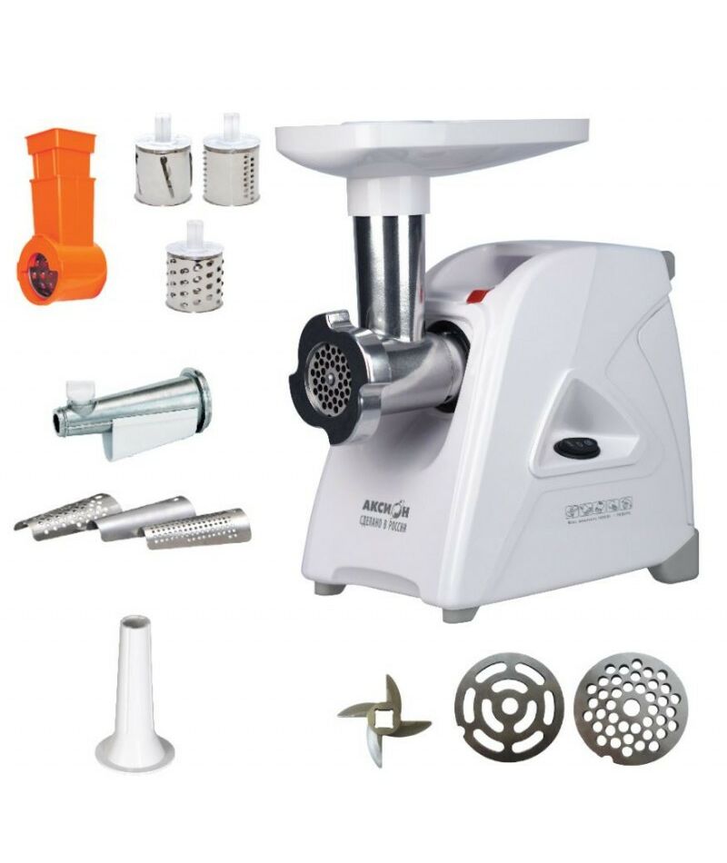 - Электрическая мясорубка М35 «Аксион» мощностью 1500 Вт обеспечит высокое качества фарша из всех видов мяса, рыбы, грибов, овощей и других продуктов. Функция «Реверс» поможет избежать наматывания жилок на шнек при переработке мяса низкого сорта