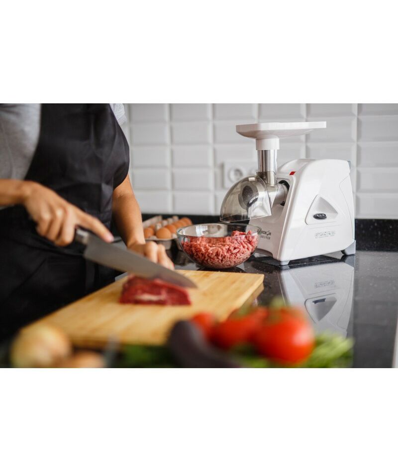 - 3 вида решеток для получения фарша разной консистенции - с диаметром отверстий 3,5 мм и 7 мм, а также овальными отверстиями