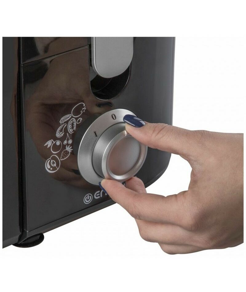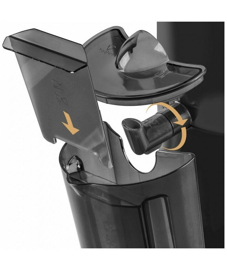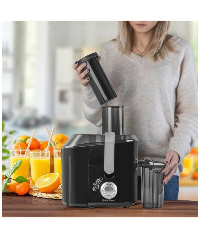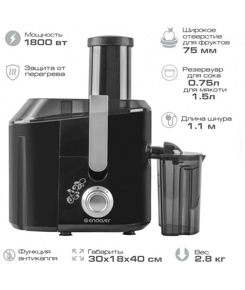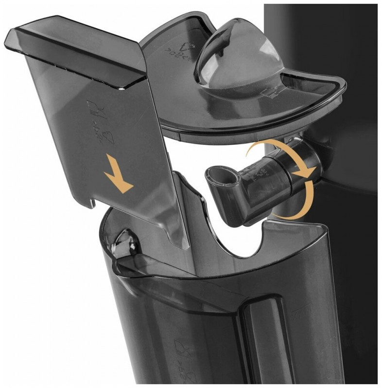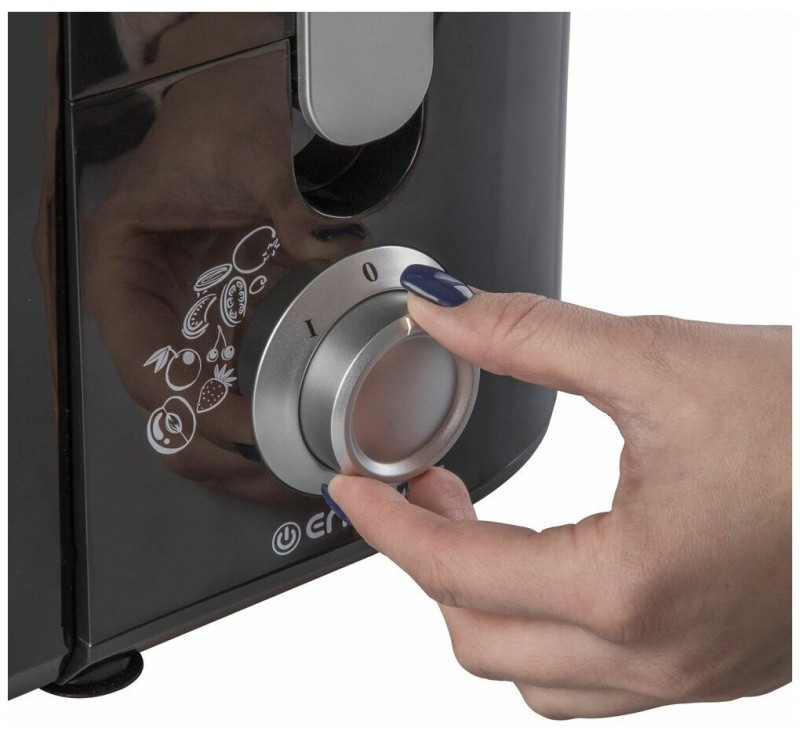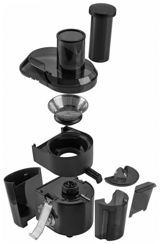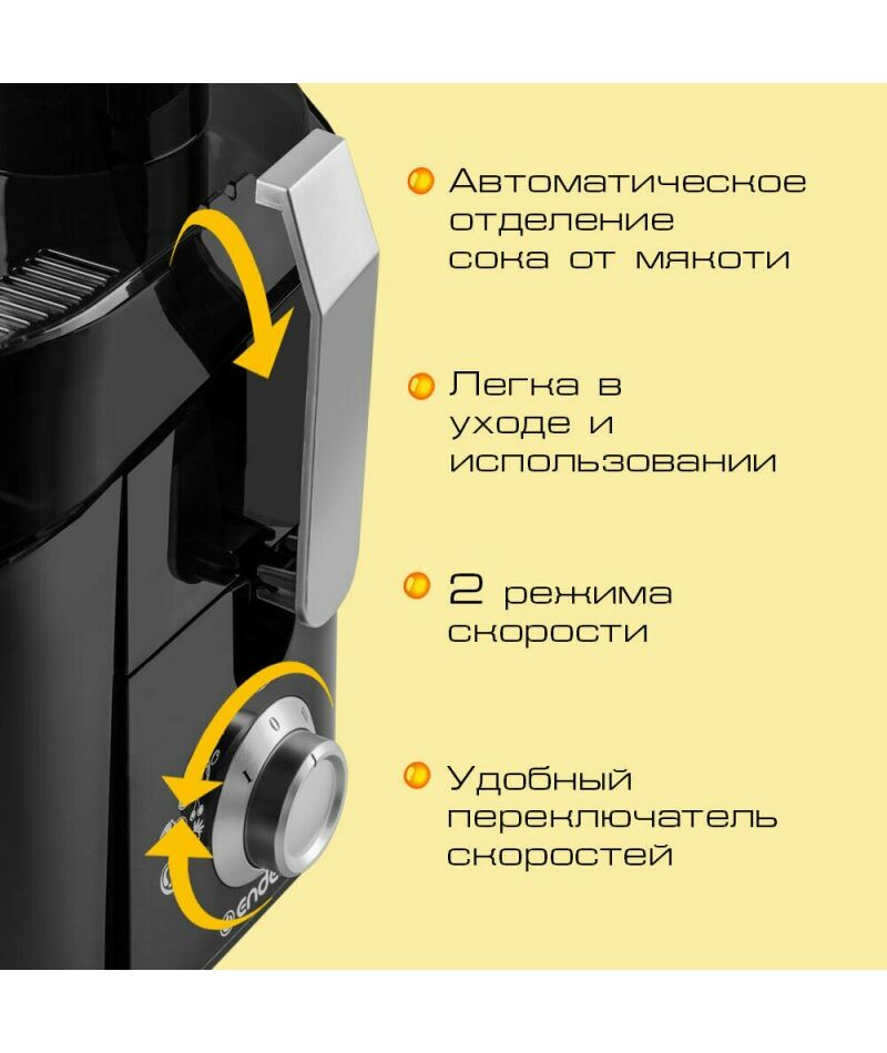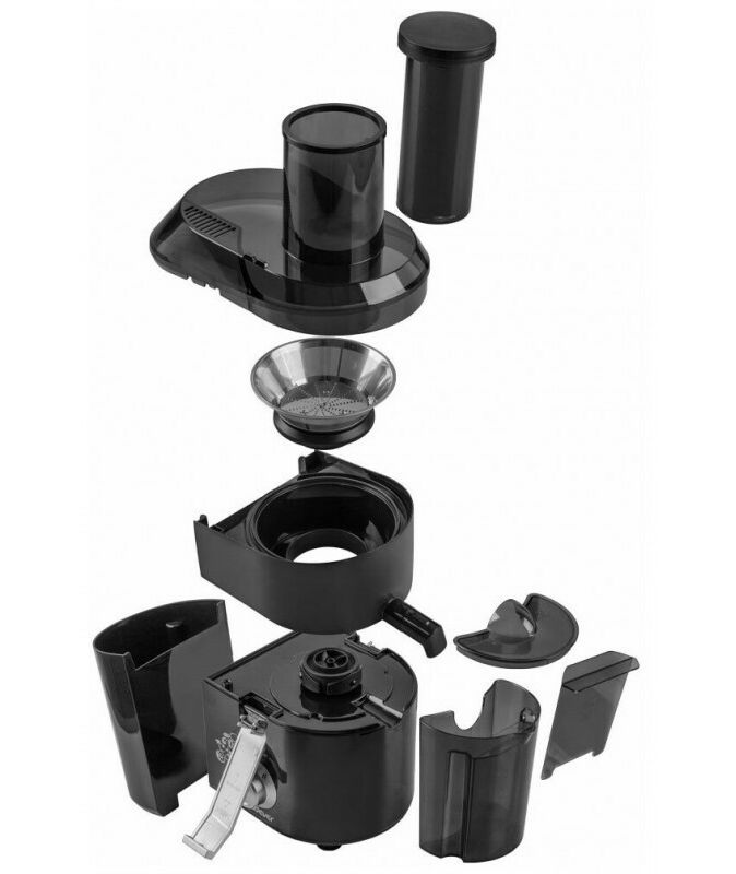 - Особенности и дополнительные функции: 2 скоростных режима, Автоматическое отделение сока от мякоти, Широкое отверстие для фруктов – 75 мм, Прозрачная емкость для сока, Функция Анти-капля, Безопасна и легка в уходе и использовании, Фильтр из нержавеющей стали, Удобный переключатель скоростей, Фильтр, емкости и толкатель допускается мыть в посудомоечной машине