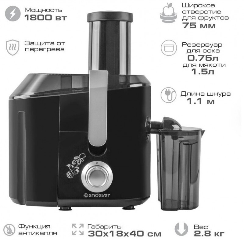 - Объем резервуара для мякоти (л): 1,5