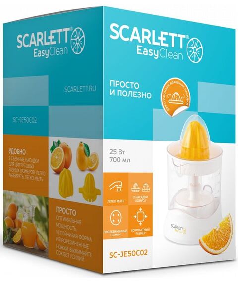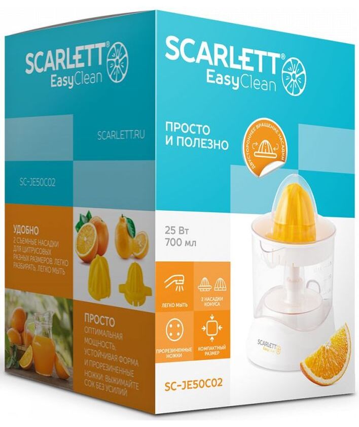 Соковыжималка Scarlett SC-JE50C02 25Вт 700мл. белый/желтый