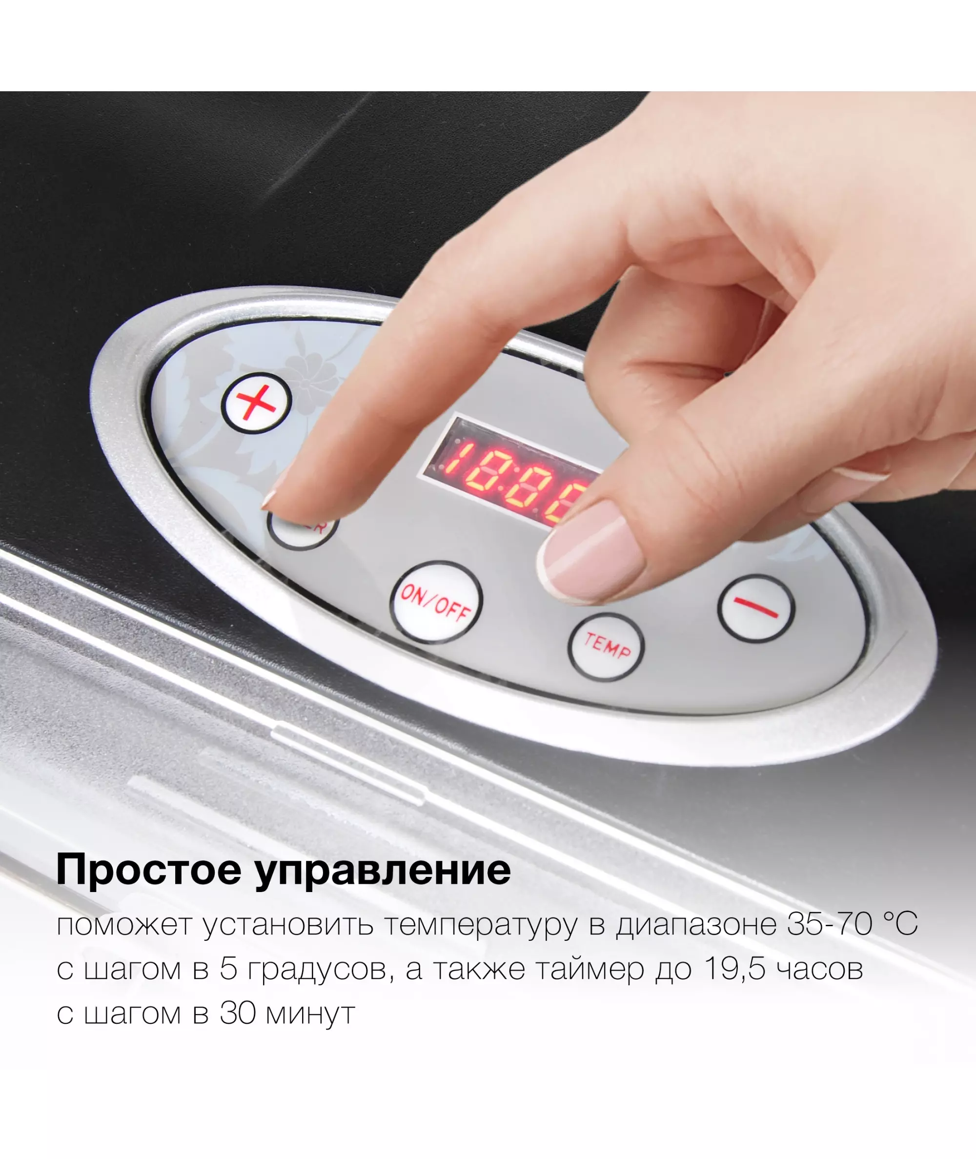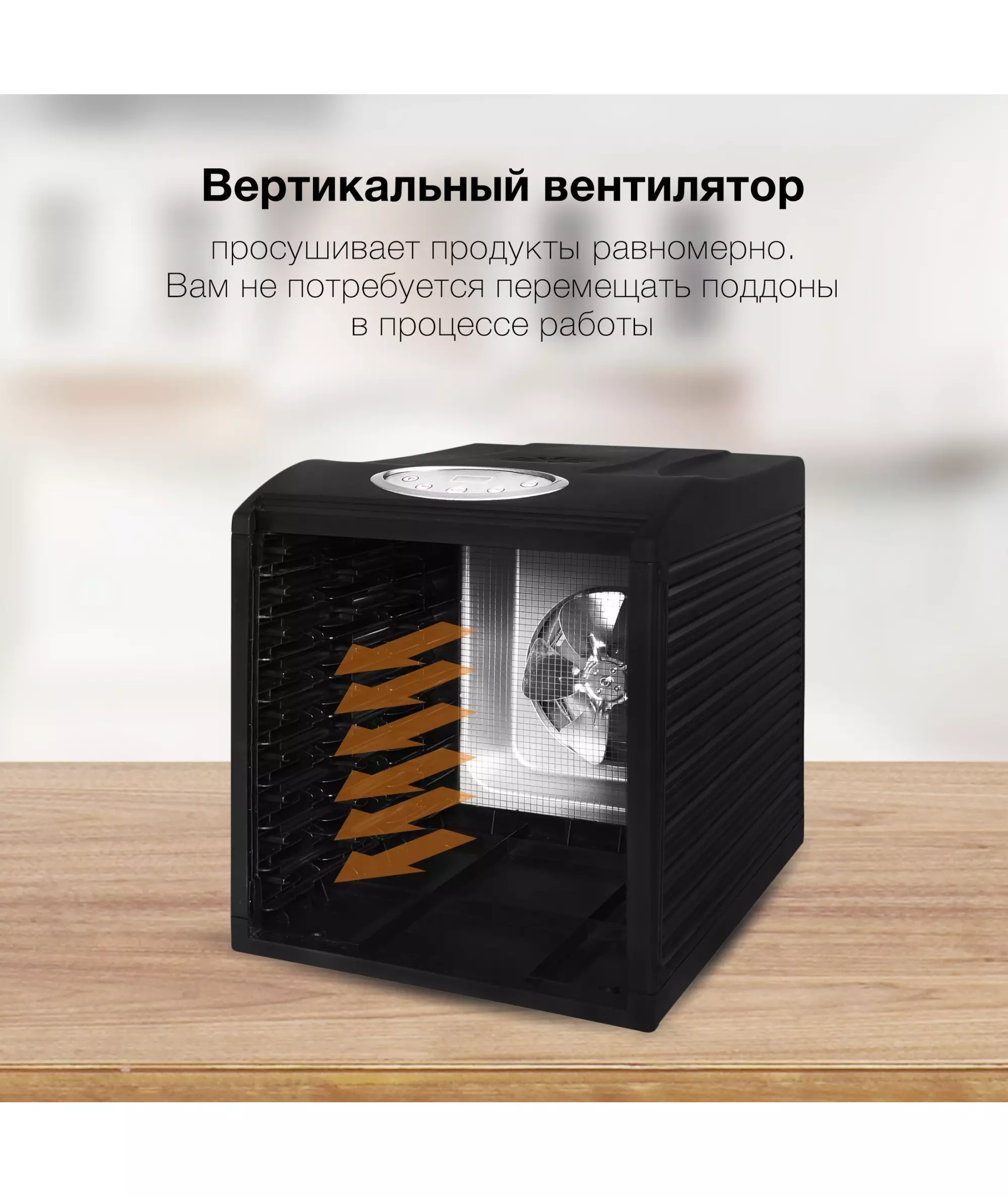 | Особенности | Вертикальное размещение вентилятора дает лучшую просушку без необходимости преставления поддонов. Интуитивное управление, таймер до 19ч |