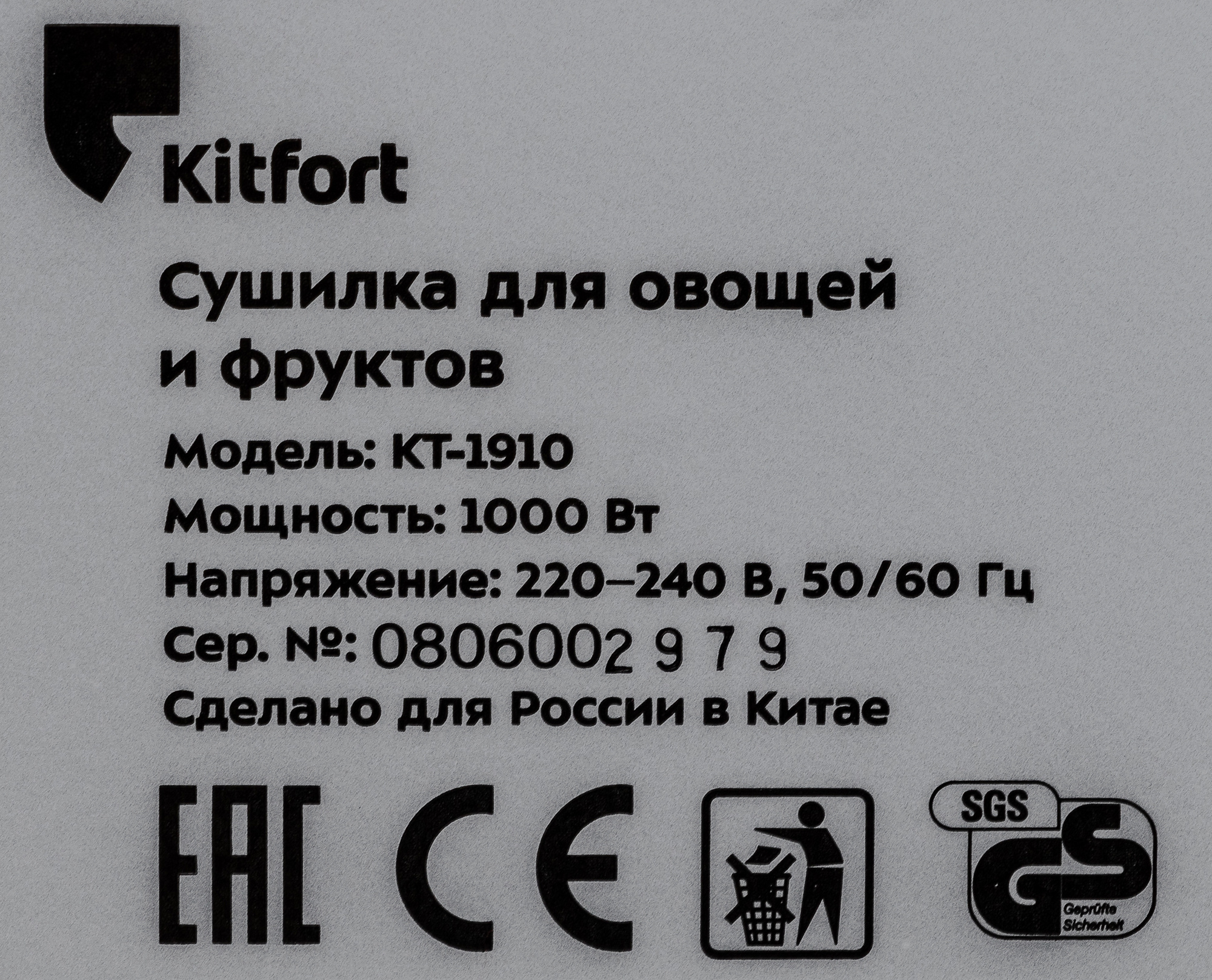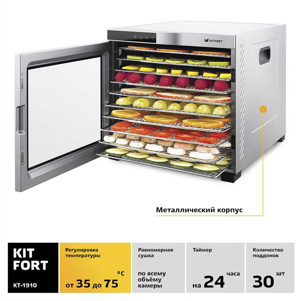 Сушка для фруктов и овощей Kitfort КТ-1910 30под. 1000Вт нержавеющая сталь