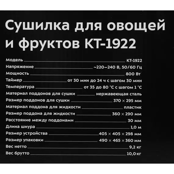 Сушка для фруктов и овощей Kitfort KT-1922 8 поддонов 800Вт нержавеющая сталь