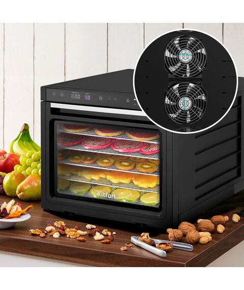 Сушка для фруктов и овощей Kitfort KT-1962 6 поддонов 1000Вт черный