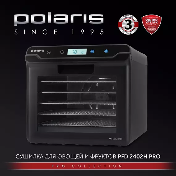Сушка для фруктов и овощей Polaris PFD 2402H Pro 19 поддонов 500Вт черный [020962]