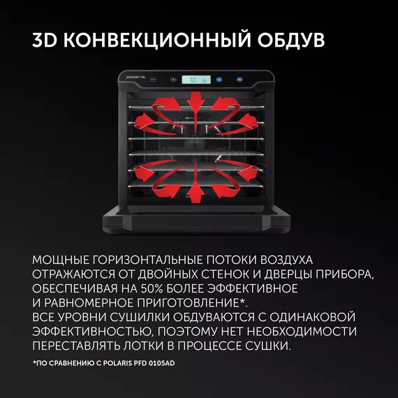 Конвекционный 3D обдув – работает на 50 % эффективнее. Двойные стенки корпуса.