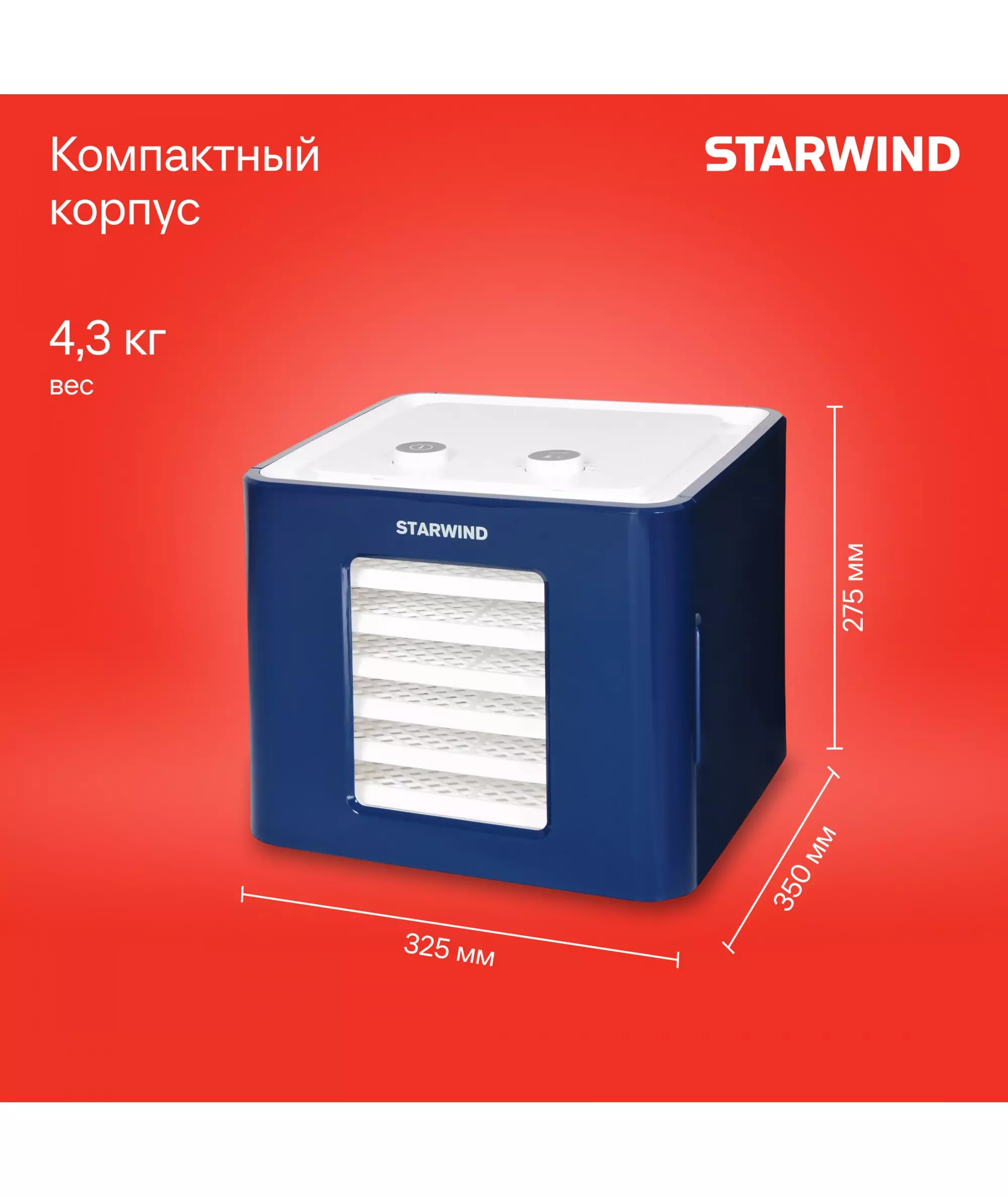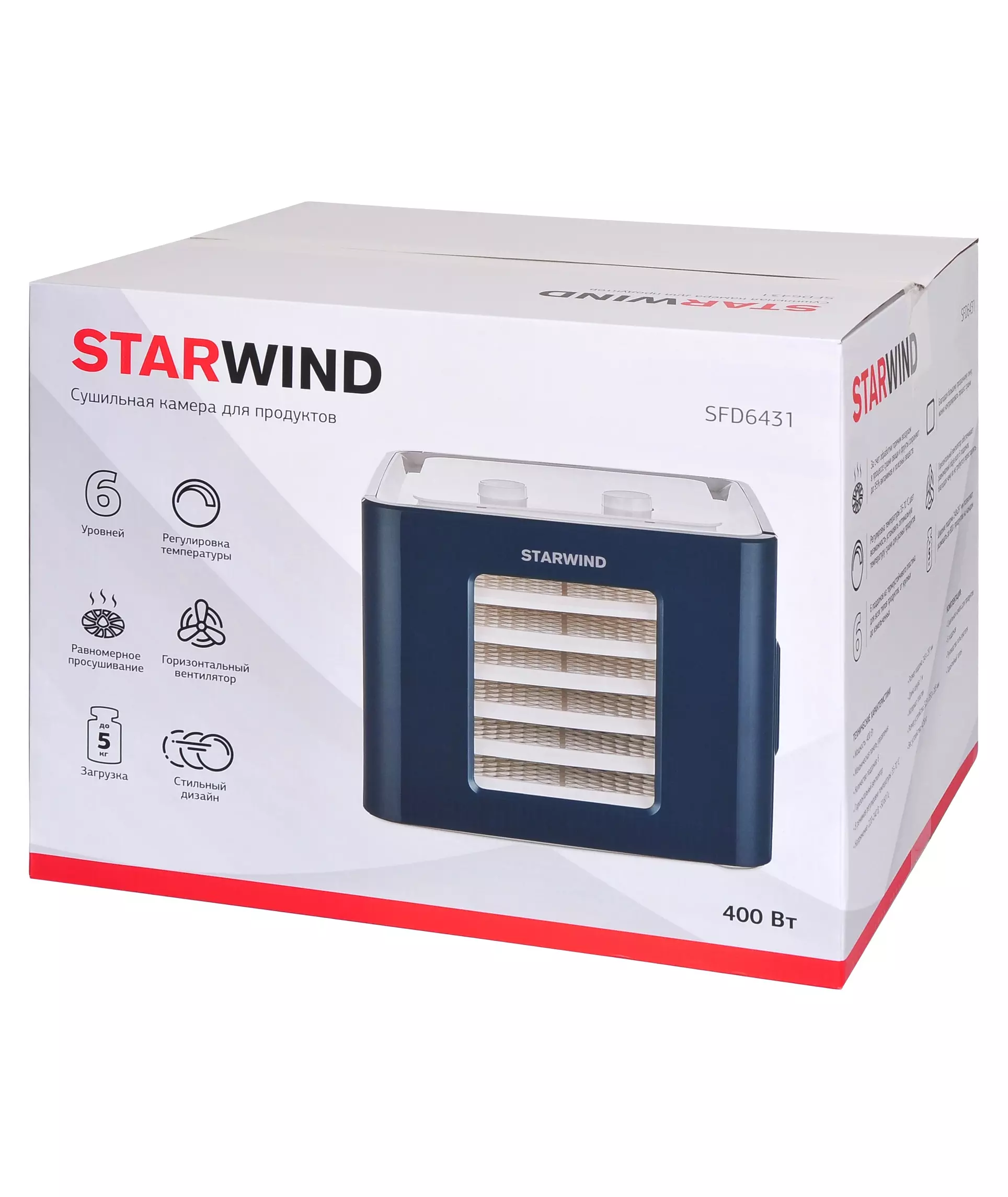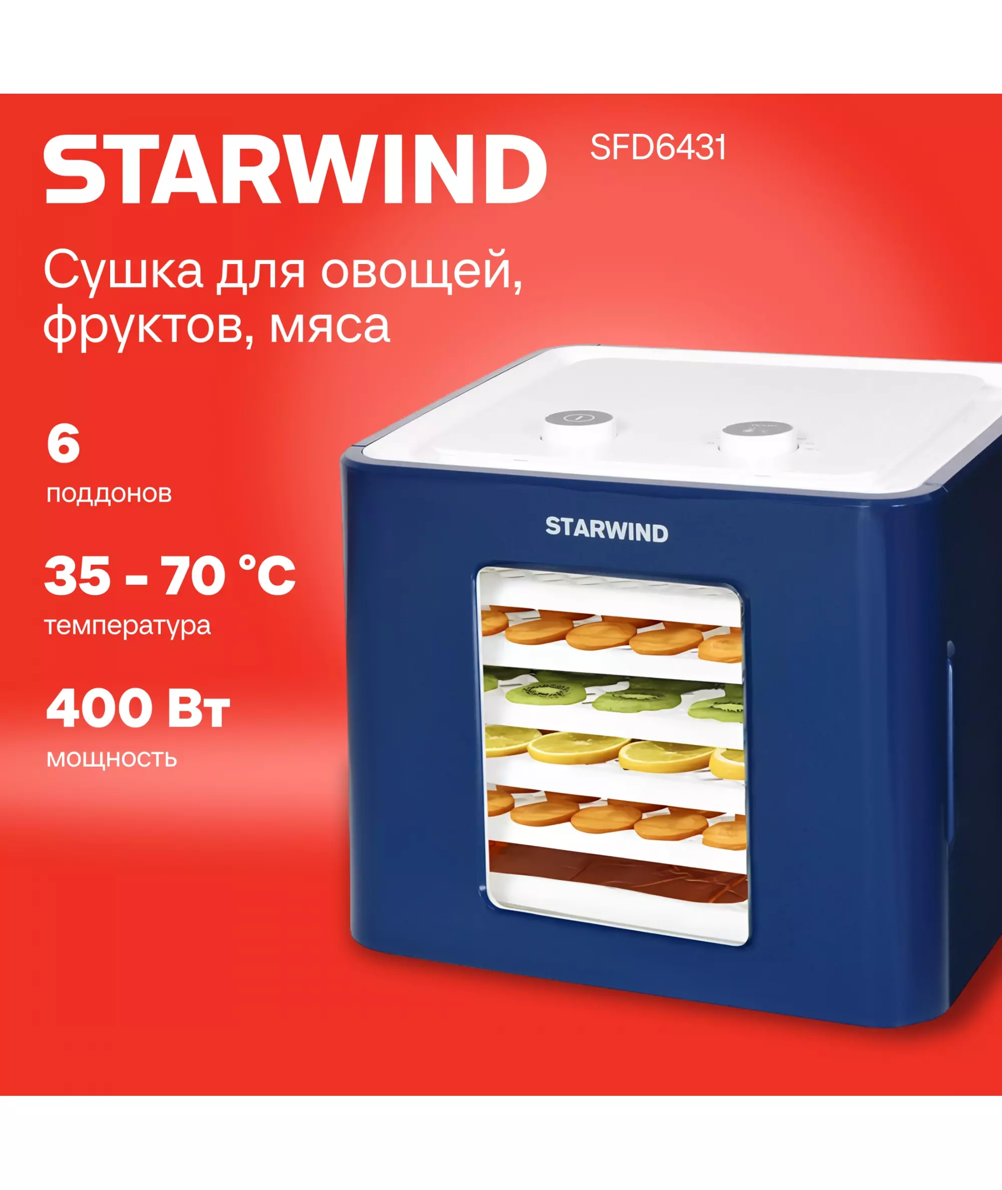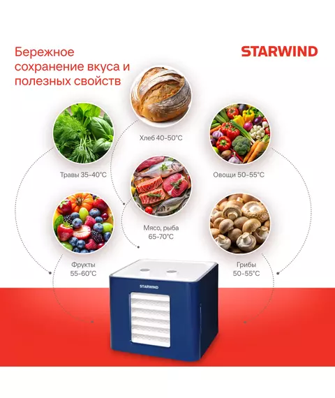 Сушка для фруктов и овощей STARWIND SFD6431 6 поддонов 400Вт синий
