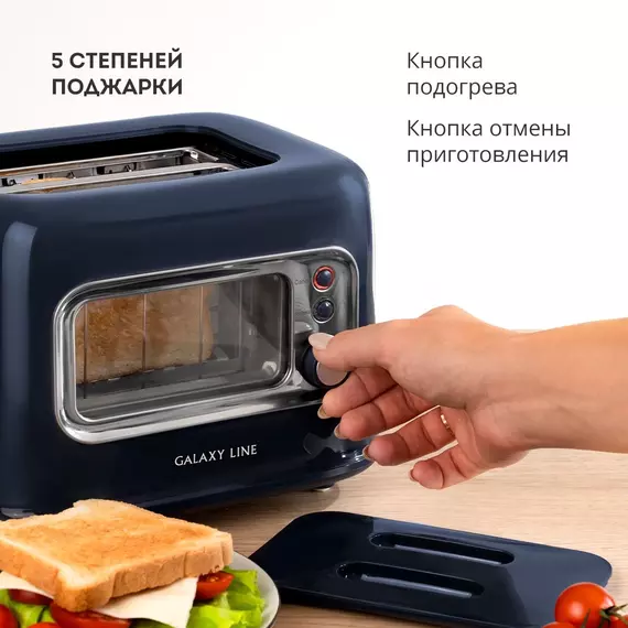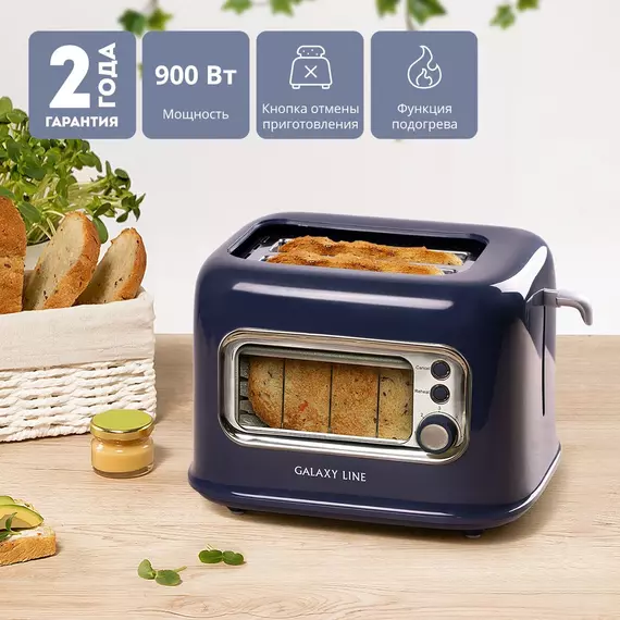 Тостер Galaxy Line GL 2913 900Вт синий [ГЛ2913Л]