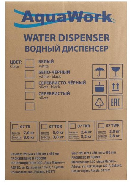 Кулер для воды AquaWork AW 0.7TDR с нагревом/охлаждением, 700 Вт, белый с черным