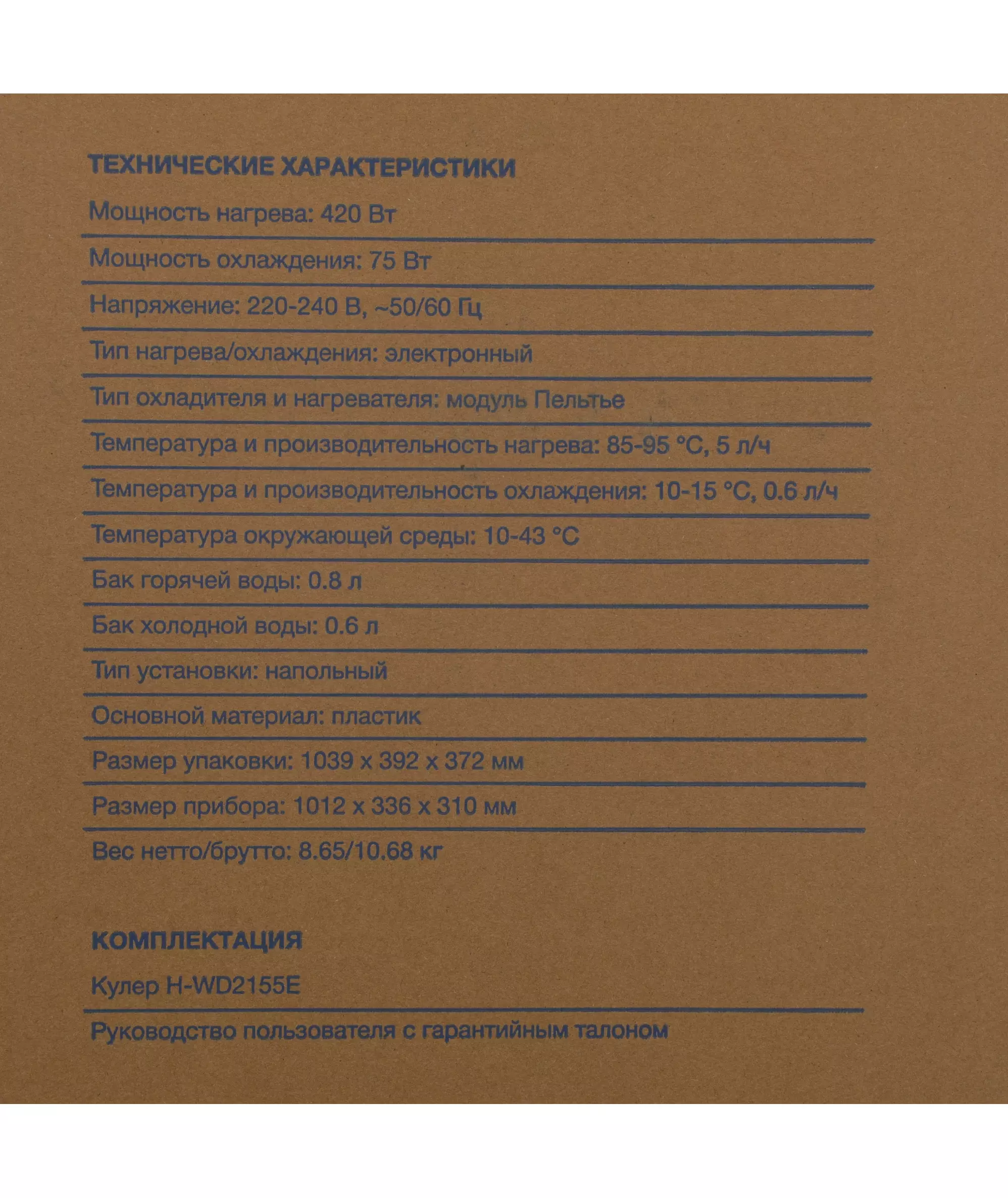 | Тип охлаждения / нагрева воды | электронный |
