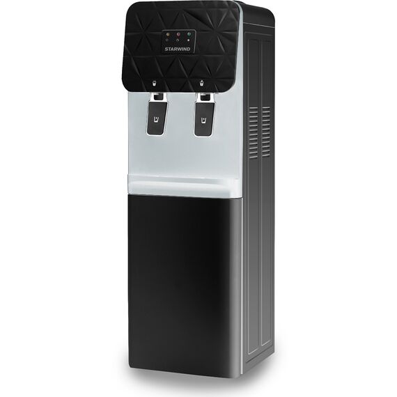 Устройство имеет полностью электронное управление и интуитивный интерфейс. Минимализм органов управления позволит быстро разобраться с функциями прибора и налить воды необходимой температуры. Всего две ручки на панели SW-1003EB управляют функционалом кулера. А удобная индикация на корпусе подскажет, готова ли нагретая или охлажденная вода к подаче и доведена ли она до нужной кондиции.