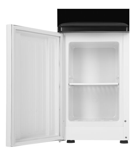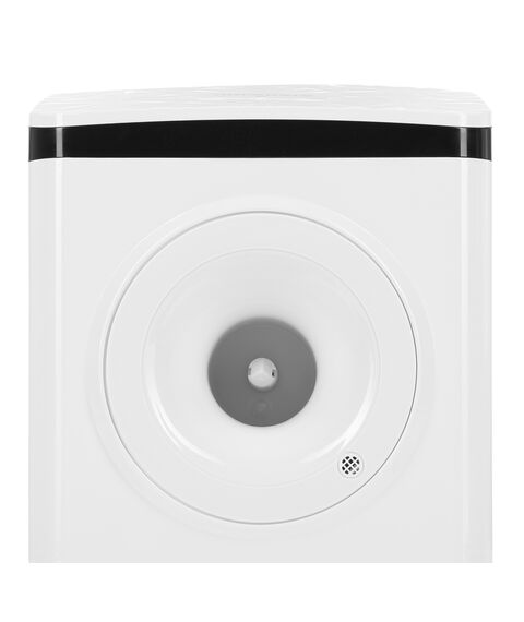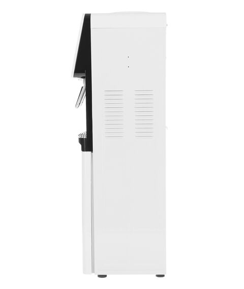 На передней панели устройства есть два удобных пуш-краника для подачи холодной и горячей жидкости. Также на ней расположена эргономичная индикация, чтобы следить за состоянием воды и её температурой. Удобный лоток, находящийся под кранами, позволит поддерживать чистоту вокруг кулера, а шкаф для посуды – хранить стаканчики в одном логичном и специально разработанном месте.