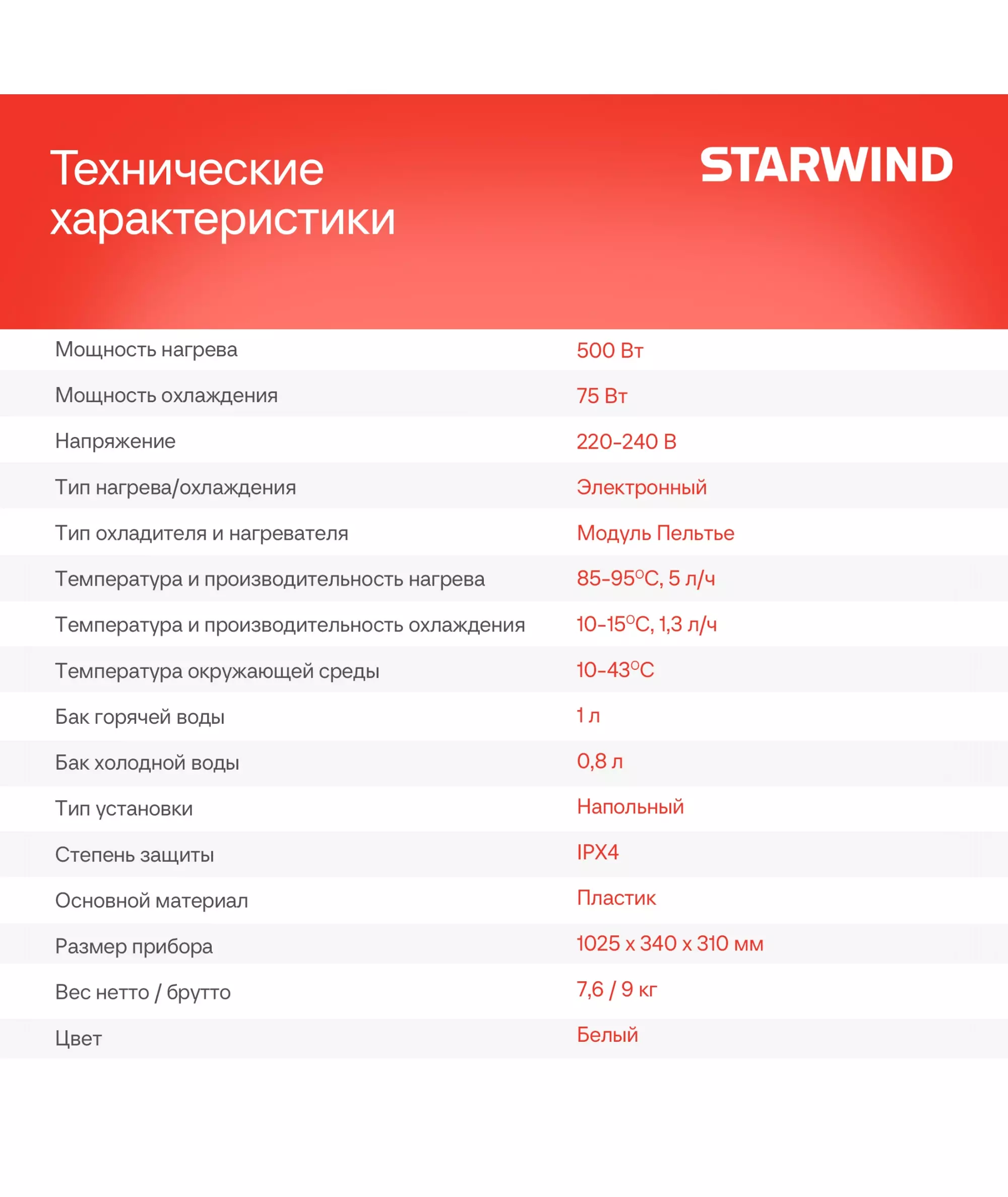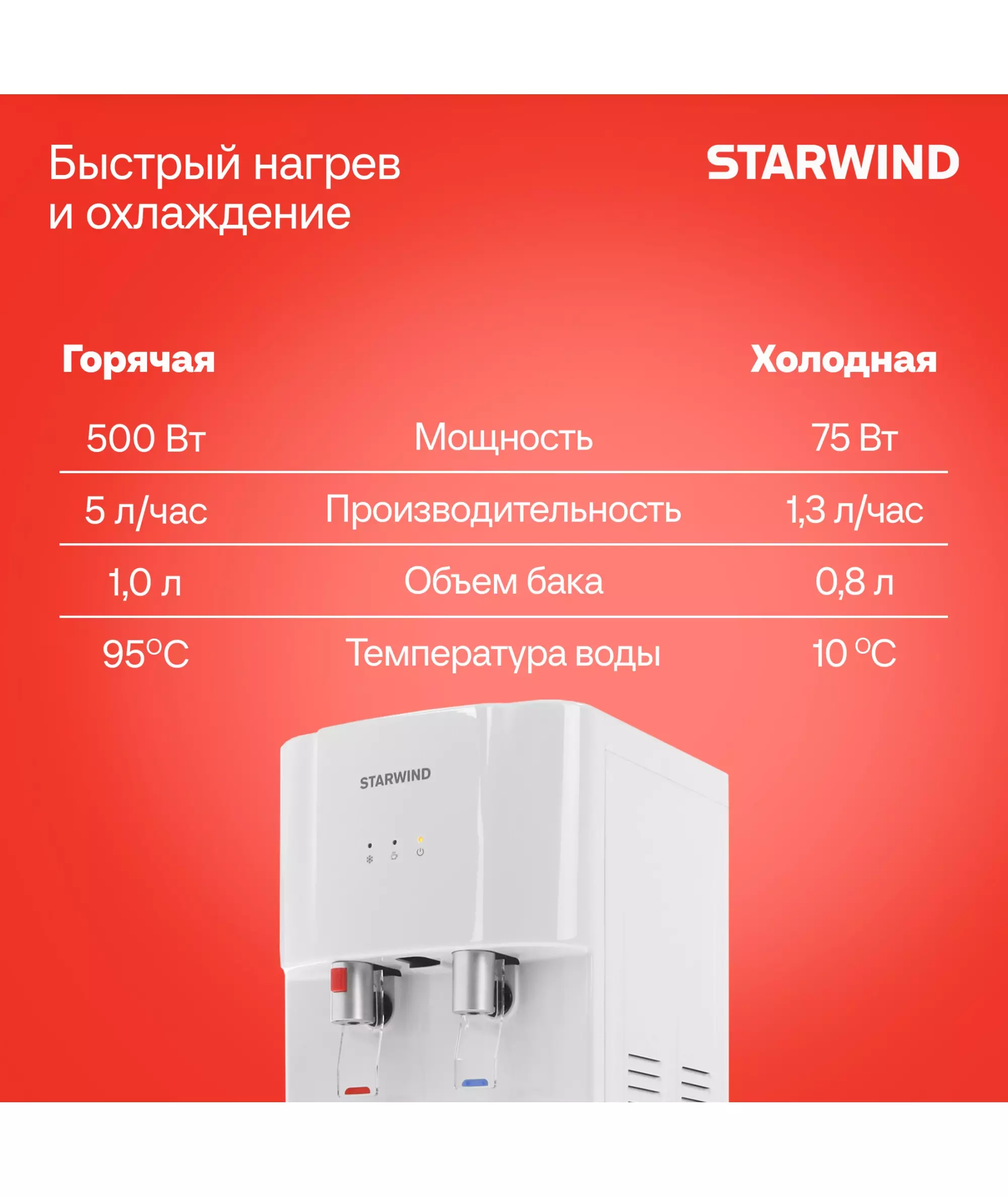 Кулер напольный STARWIND SW-1113EW электронный белый