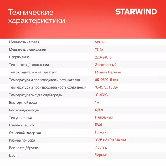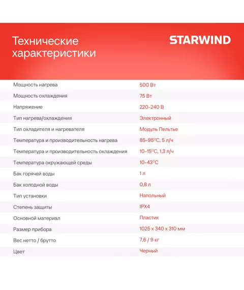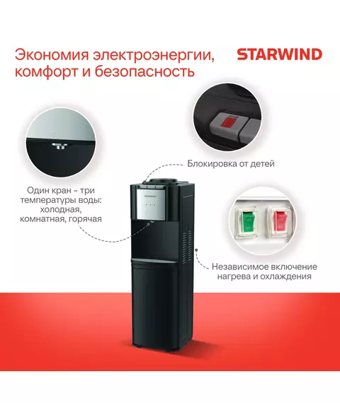 Кулер напольный STARWIND SW-1115EB электронный черный