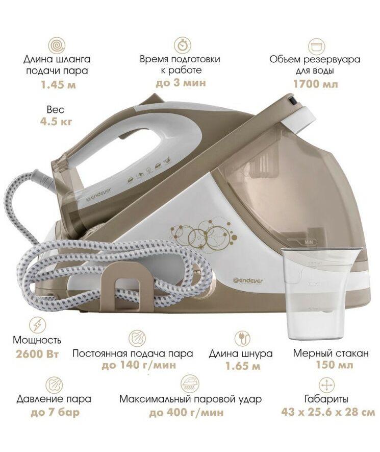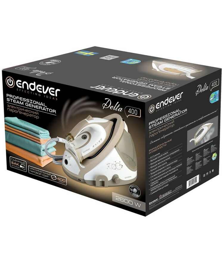 Представляем Вашему вниманию электрический парогенератор ENDEVER DELTA-400, который сделает Ваши вещи идеально гладкими без риска прожечь ткань. Мощный парогенератор создает давление до 7 бар, что позволяет делать уход за Вашими вещами более удобным и быстрым, поскольку способен погладить стопку белья за один раз с таким феноменальным паровым ударом 400 г/мин. Постоянная подача пара составляет до 140 г/мин, что гораздо больше по сравнению с обычным утюгом