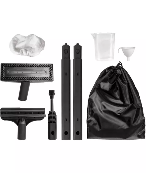 | Принадлежности в комплекте | Тряпка, 2 удлинительные трубки, воронка для наполнения бойлера водой, мешок для хранения аксессуаров, мерный стакан, уплотнительное кольцо. |
