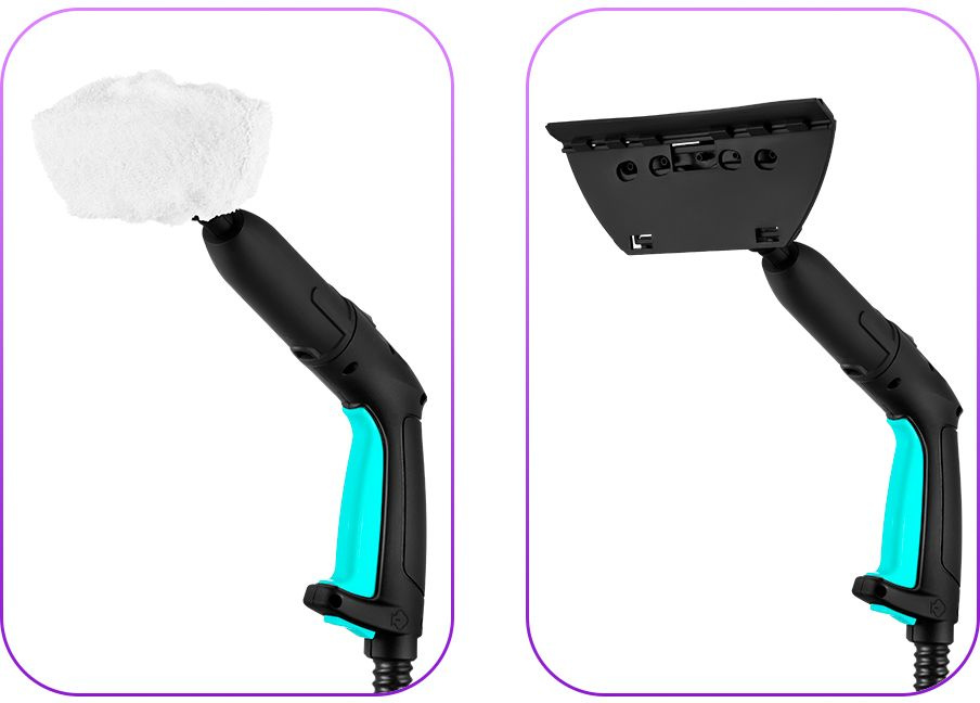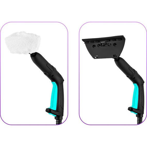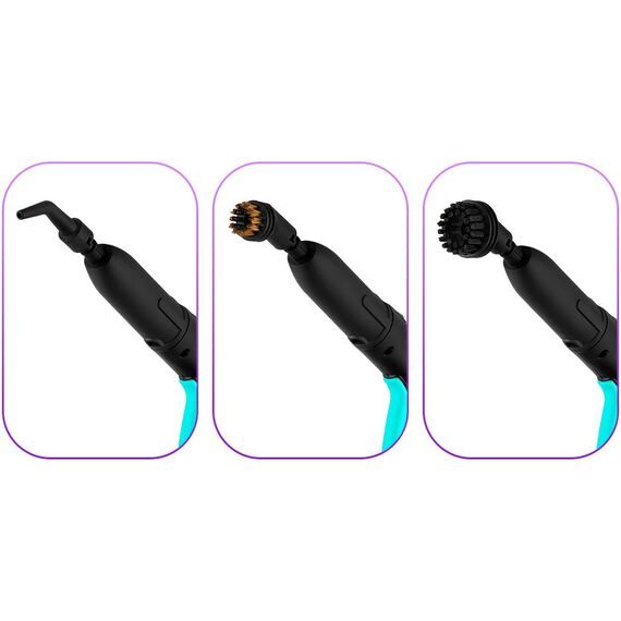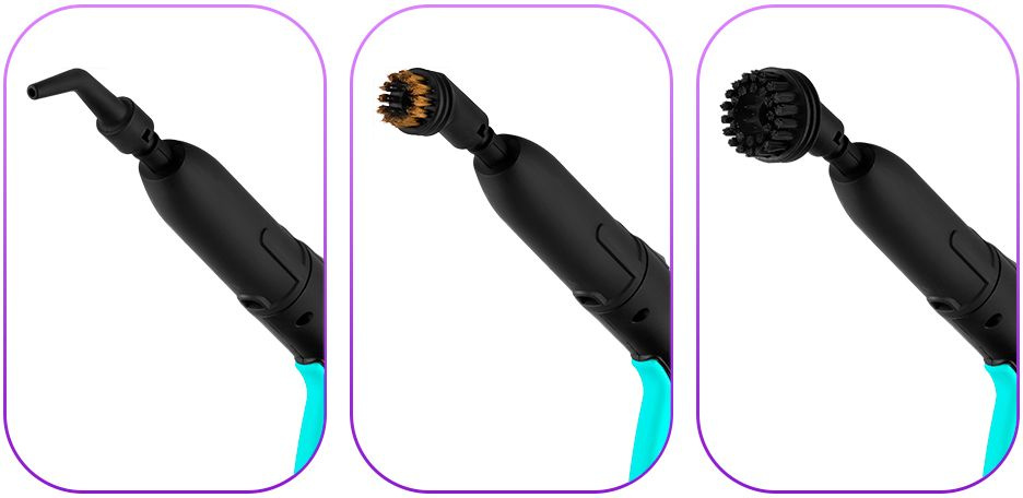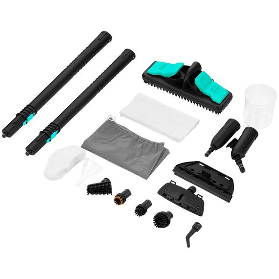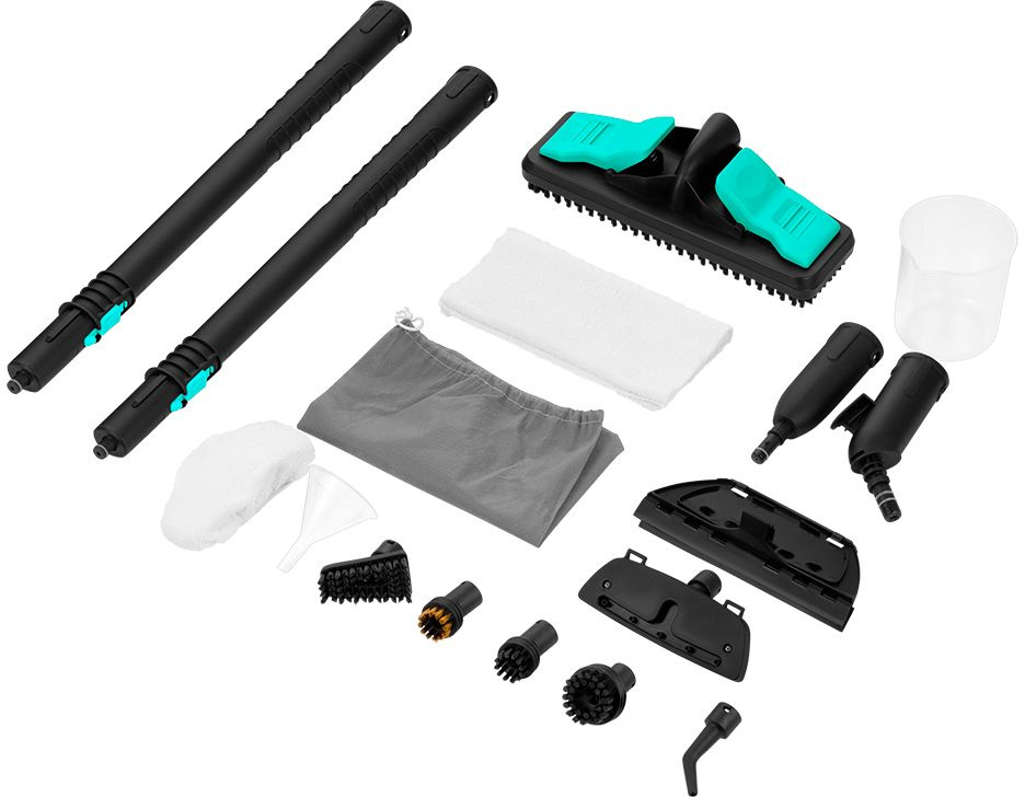 | Насадки в комплекте | 2 удлинительные трубки, напольная щетка с тряпкой и адаптером, насадка для отпаривания с тряпкой, скребок для стекла, 3 нейлоновые щетки, латунная щетка, угловая насадка, струйная насадка |
