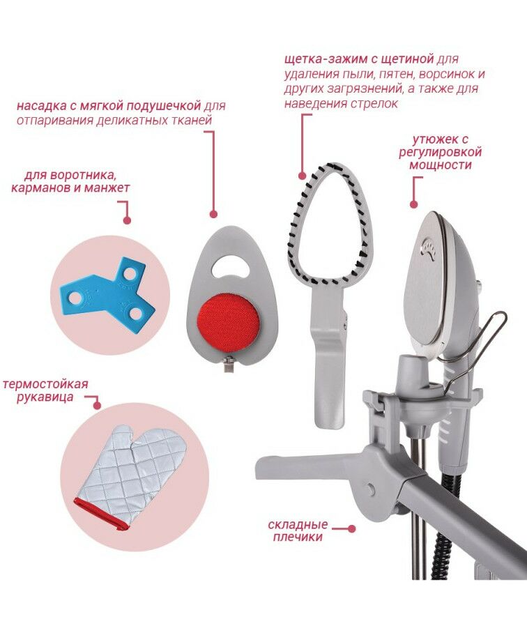 - Паровой утюжок с регулировкой температуры и кнопкой подачи пара