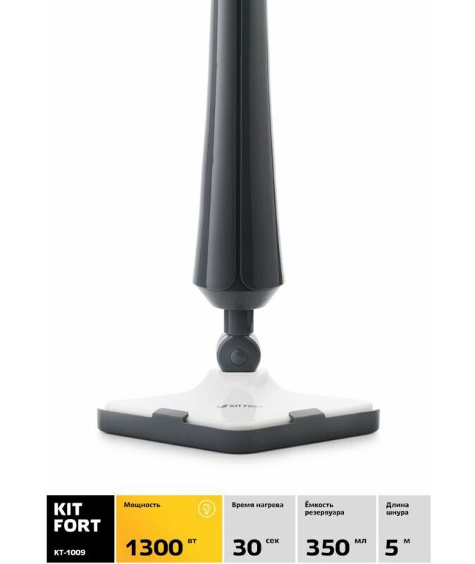 Швабра паровая Kitfort КТ-1009 1300Вт черный/белый