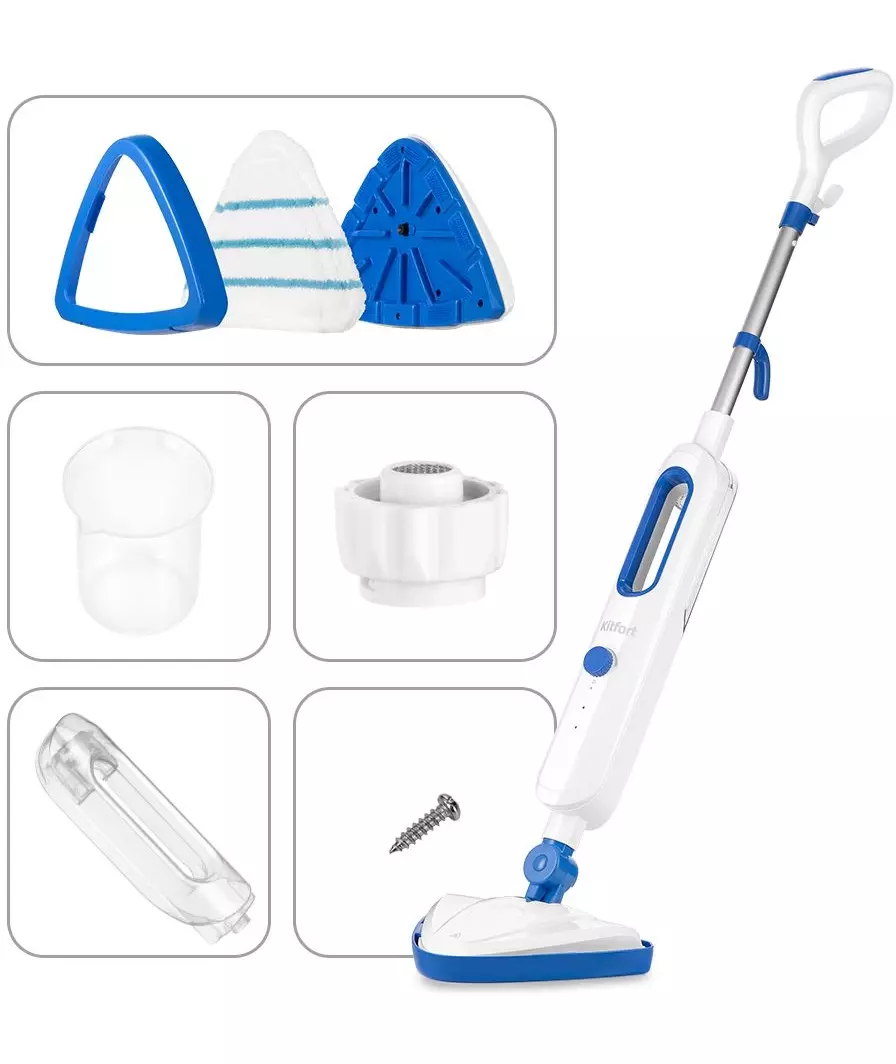 Швабра паровая Kitfort КТ-1048-3 1300Вт белый/синий