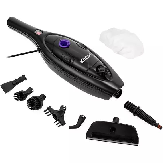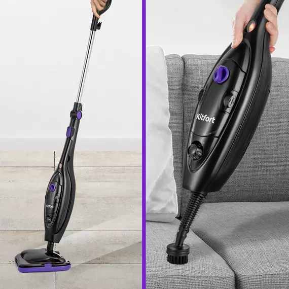 Швабра паровая Kitfort КТ-1061 1300Вт черный/фиолетовый