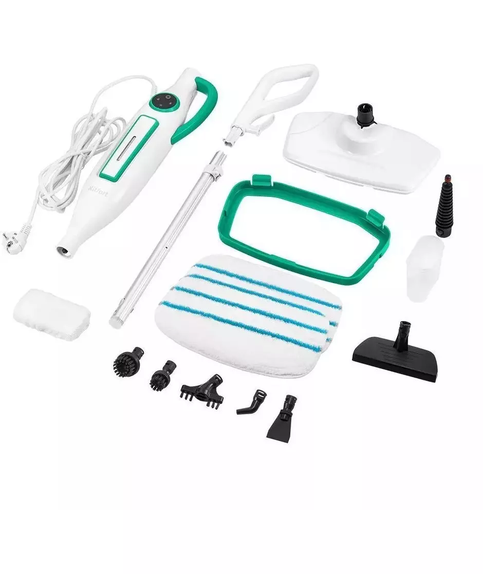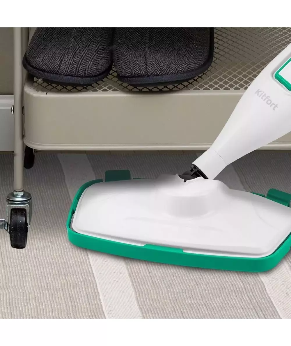 Швабра паровая Kitfort КТ-1098 1250Вт белый/зеленый