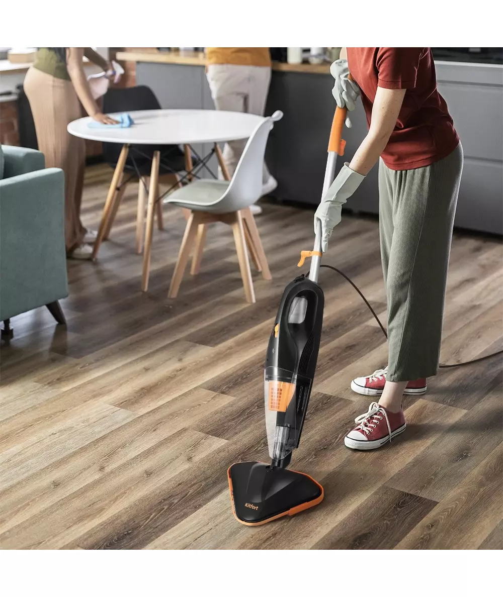 Швабра паровая Kitfort КТ-3923 1300Вт черный/оранжевый