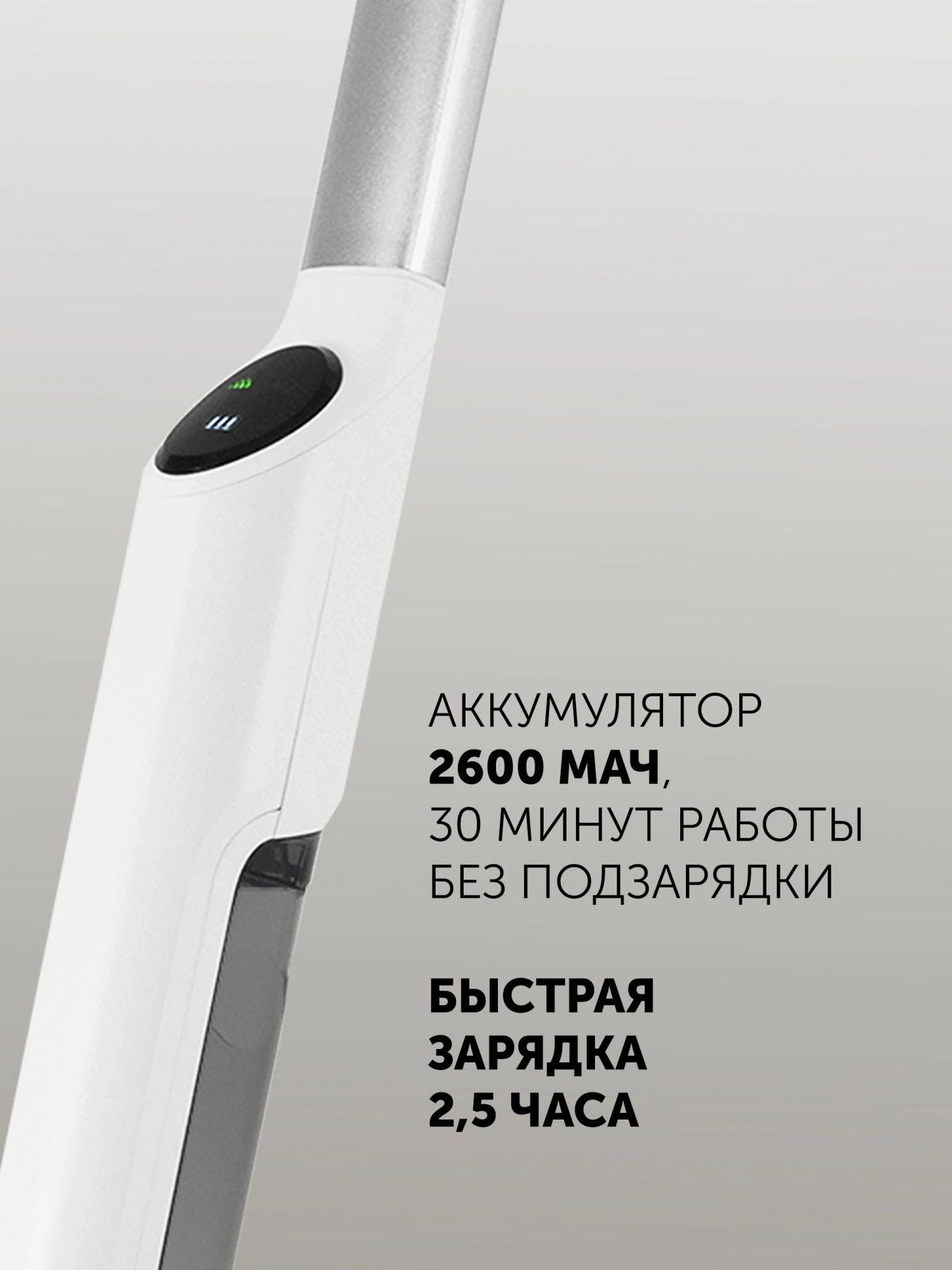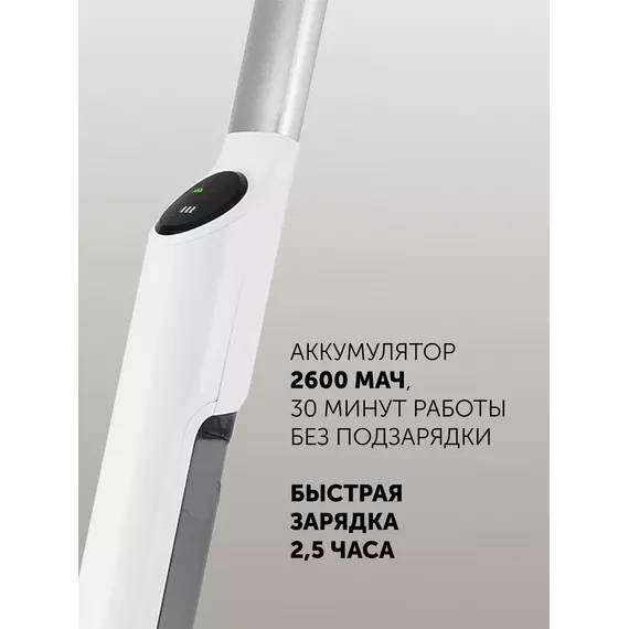 Беспроводная электрошвабра PFW 3030 благодаря своей маневренности позволяет эффективно мыть полы даже под мебелью и в труднодоступных местах. Мощность электрошвабры 40 Вт. Время работы до 30 мин благодаря мощному аккумулятору 2600 мАч. Быстрая зарядка до 2,5 часов.