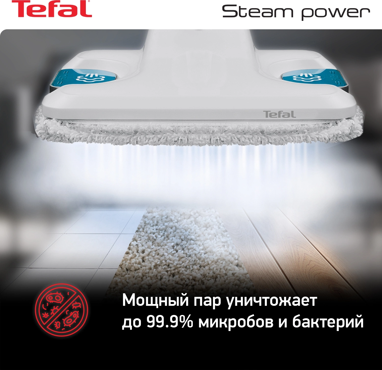 Швабра паровая TEFAL VP6557RH 1200Вт белый [2211400293]
