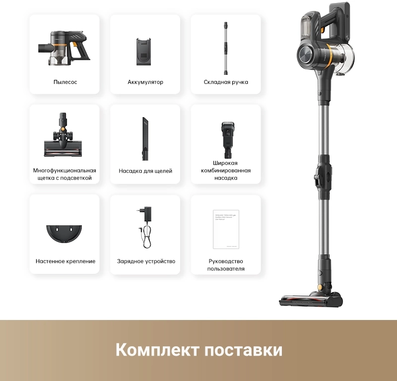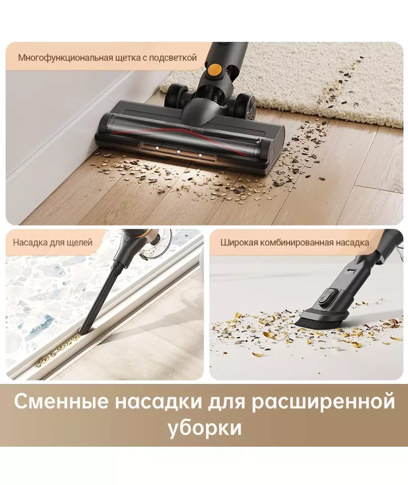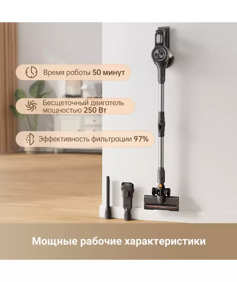 Максимальное время работы 50 мин, светодиодный экран, выдвигающаяся трубка для очистки углов.