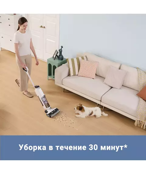 K10 убирает влажные и сухие загрязнения в течение 30 минут* равномерно на поверхностях площадью до 200 м2* без перерыва.Удобный светодиодный дисплей позволяет отслеживать рабочее состояние, элементы управления очисткой, уровень заряда батареи, мощность всасывания и предупреждать о неисправностях.