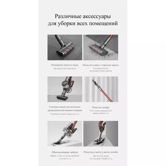 | Другие насадки и принадлежности | Настенная подставка для хранения и зарядки «2 в 1», удлинительная трубка, удлинительный шланг. |