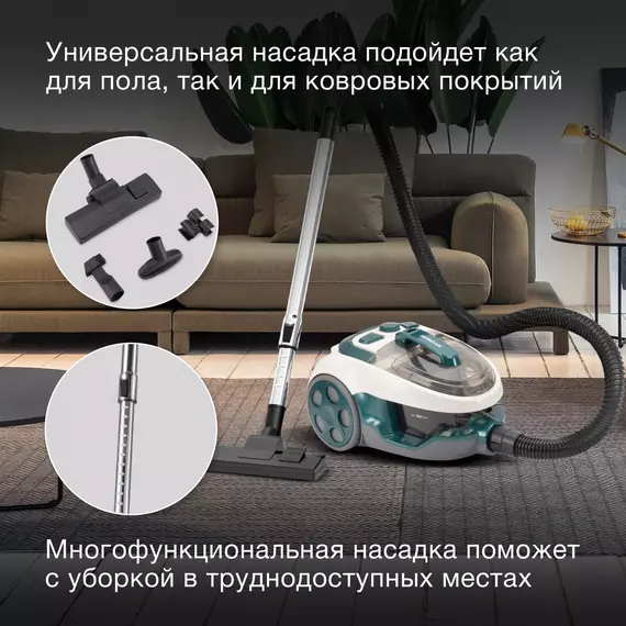 | Аксессуары в комплекте | насадка для пола и ковров, щелевая насадка, щетка |