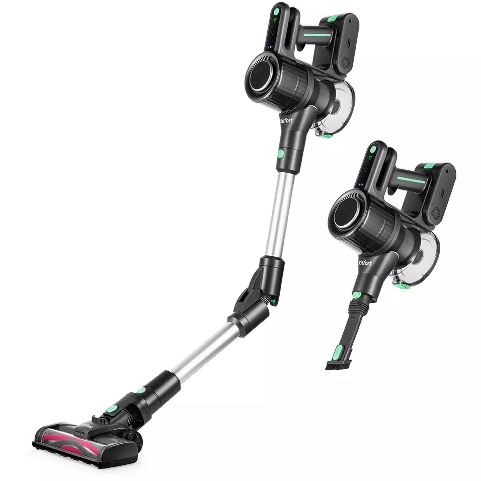 Беспроводной вертикальный пылесос КТ-5168 удобен при локальной и генеральной уборке. Он компактен, всегда под рукой и готов к работе. Утомительный процесс превращается в лёгкое и увлекательное занятие, а время уборки сокращается вдвое!