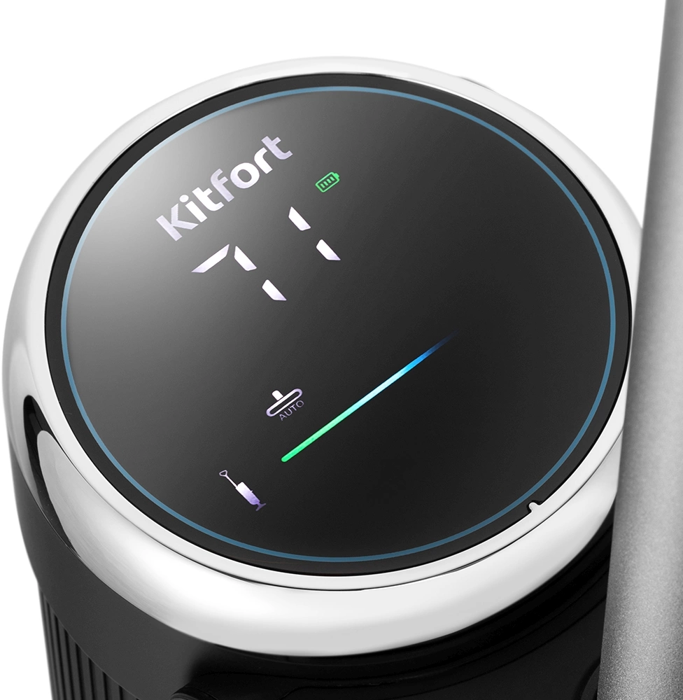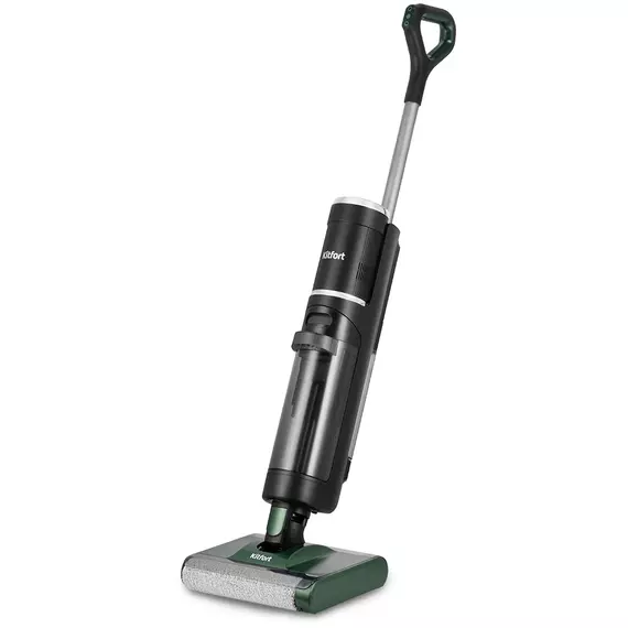 Вертикальный беспроводной моющий пылесос КТ-5259 очень удобен для проведения сухой и влажной уборки. По умолчанию устройство подает воду на валики турбощётки. Для сильных загрязнений предусмотрена усиленная подача воды.