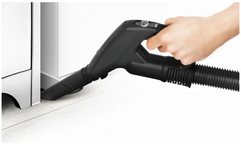 - Технология Kompressor позволяет собирать в контейнер больше пыли. Специальная моторизированная лопасть в контейнере сбивает пыль в компактные брикеты, что обеспечивает большую вместительность, а также легкую и гигиеничную очистку
