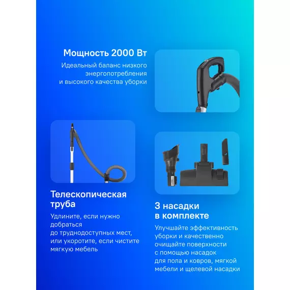 | Аксессуары в комплекте | насадка для мягкой мебели, насадка для пола и ковров, щелевая насадка |