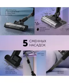 7 в 1 пылесосит, моет и собирает жидкость напольная станция с функцией самоочистки валика 500 Вт мощность до 60 минут без подзарядки LED дисплей для контроля работы и состояния батареи 2 аккумулятора в комплекте Характеристики Основные характеристики Тип Вертикальный пылесос...