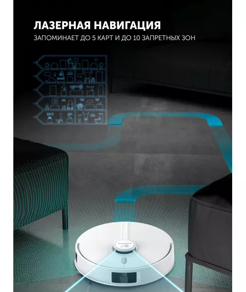 | Функции робота-пылесоса | автоматическая работа, автоматический поиск зарядного устройства, построение карты помещения, таймер на каждый день недели, уборка по расписанию, управление со смартфона |