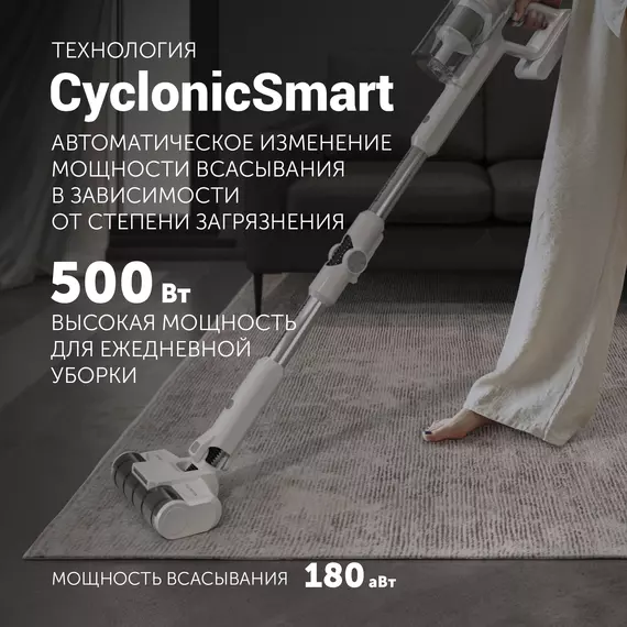 500 Вт Высокая мощность для ежедневной уборки Время работы до 60 минут 10 лет Гарантия на инверторный мотор 5 в 1 БЕСПРОВОДНОЙ Вертикальный и компактный ручной МОЮЩИЙ 4 НАСАДКИ