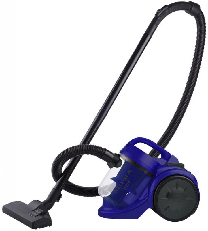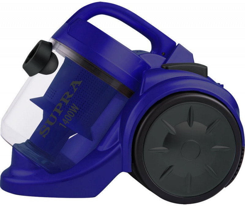 Пылесосы циклон Supra VCS-1492 мощность 1400 Вт, мощность всасывания 270 Вт, система очистки с НЕРА-фильтром, контейнер для сбора пыли емкостью 2.5л, пластиковые трубки, цвет синий