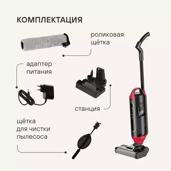 | Аксессуары в комплекте | насадка для влажной уборки ковров/полов, щетка |