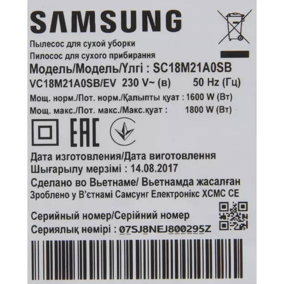 Пылесос Samsung VC18M21A0SB/EV 1800Вт синий/черный