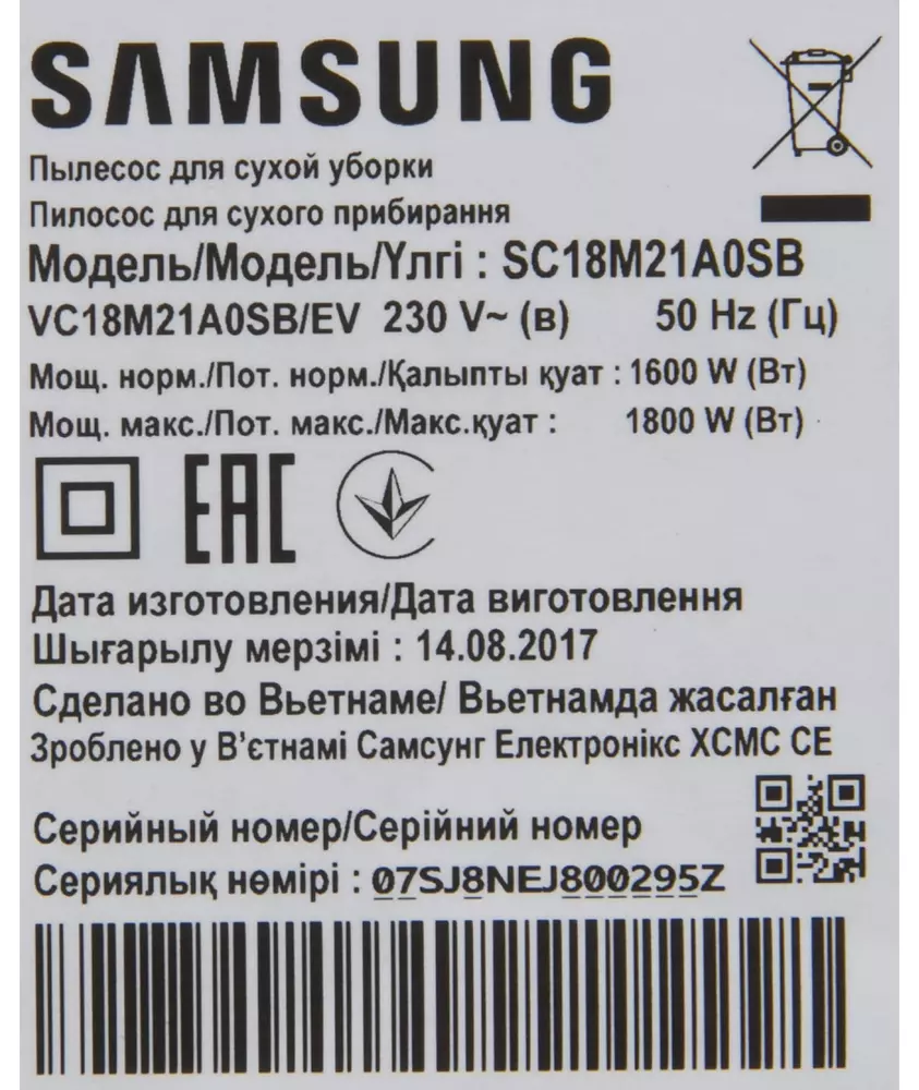 | Аксессуары в комплекте | насадка для пола и ковров, щелевая насадка |