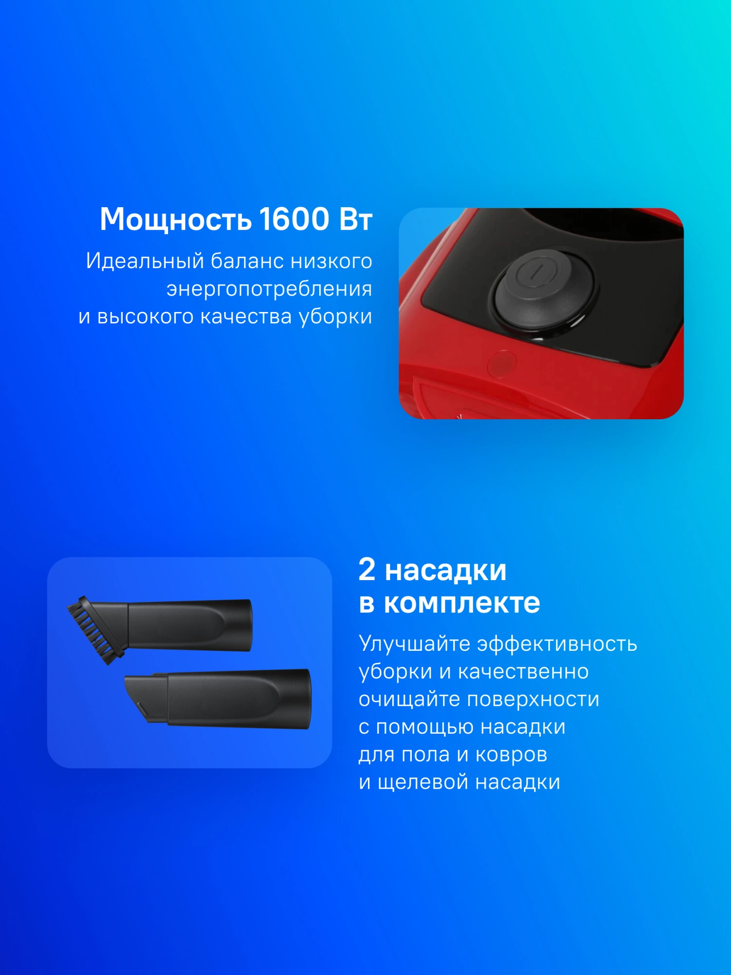 | Аксессуары в комплекте | насадка для пола и ковров, щелевая насадка |