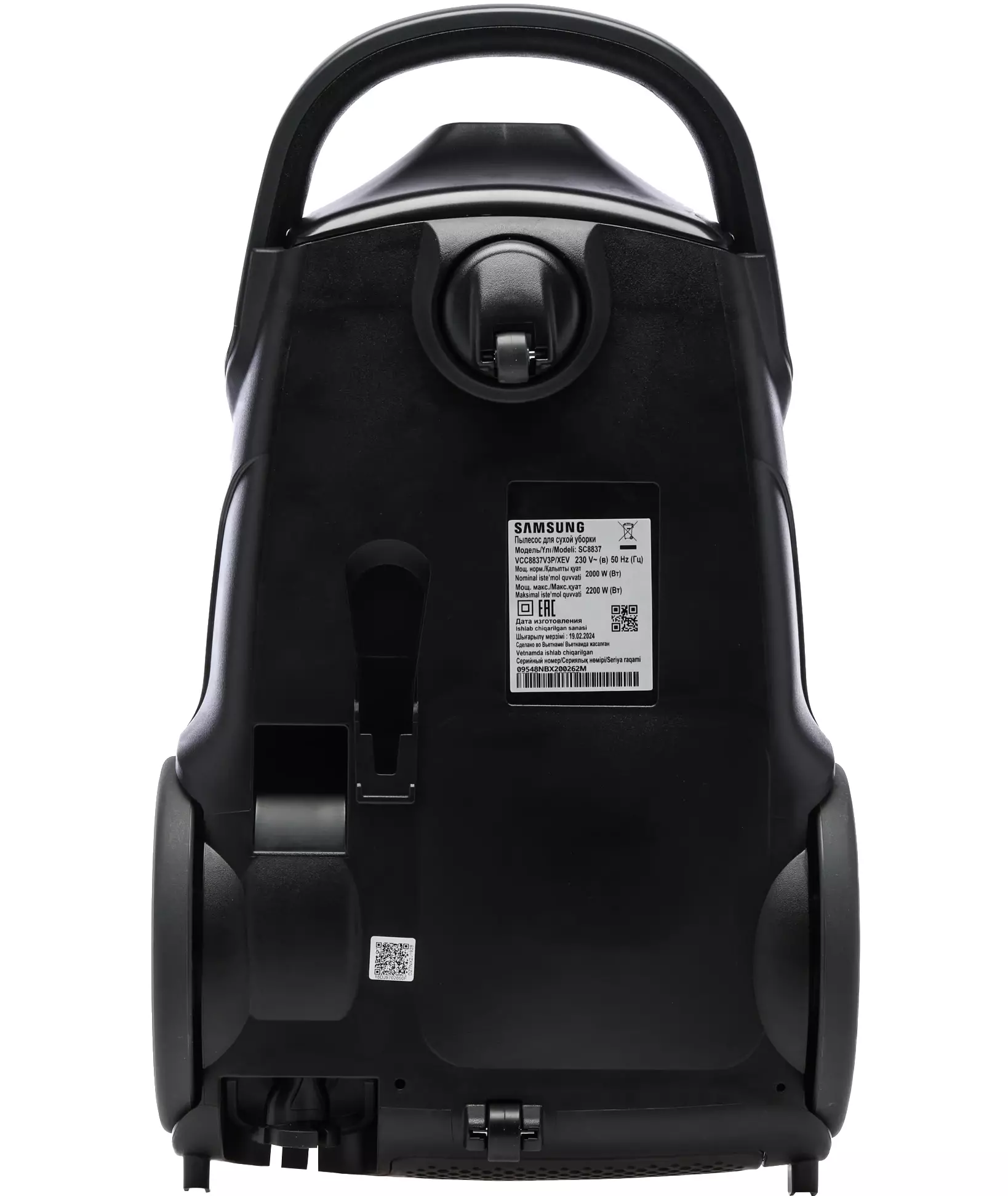 | Особенности пылесоса | легко очищаемый пылесборник, поворачивающиеся колеса, шланг |