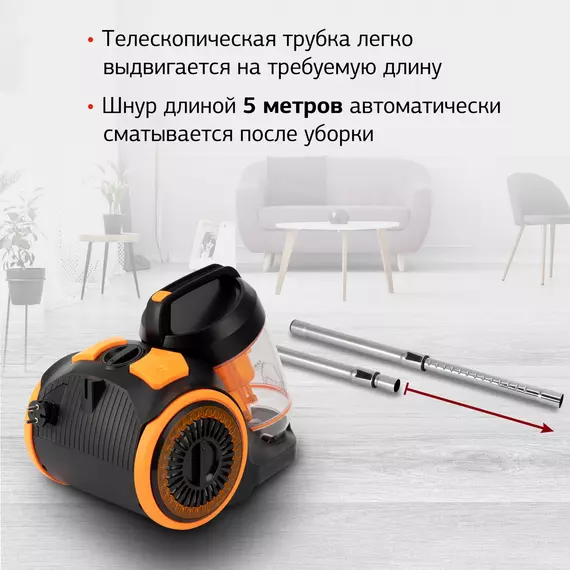 | Особенности пылесоса | легко очищаемый пылесборник, шланг |