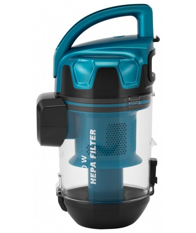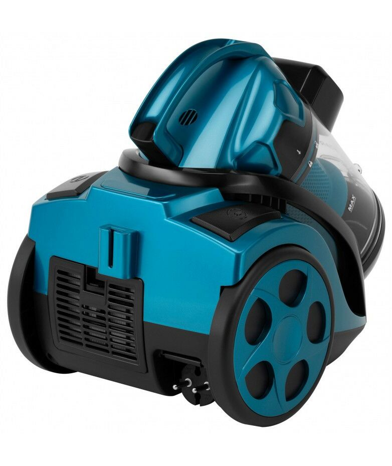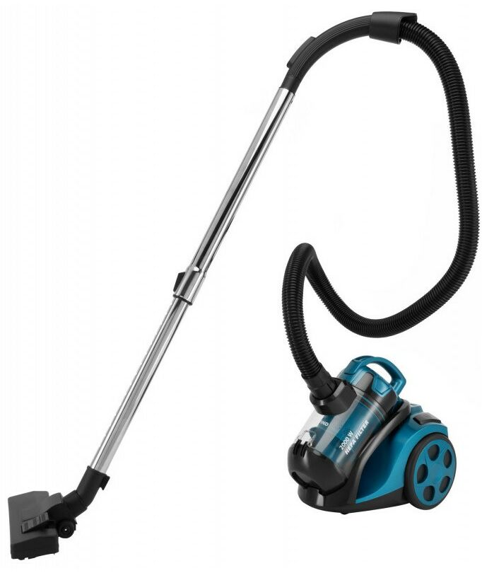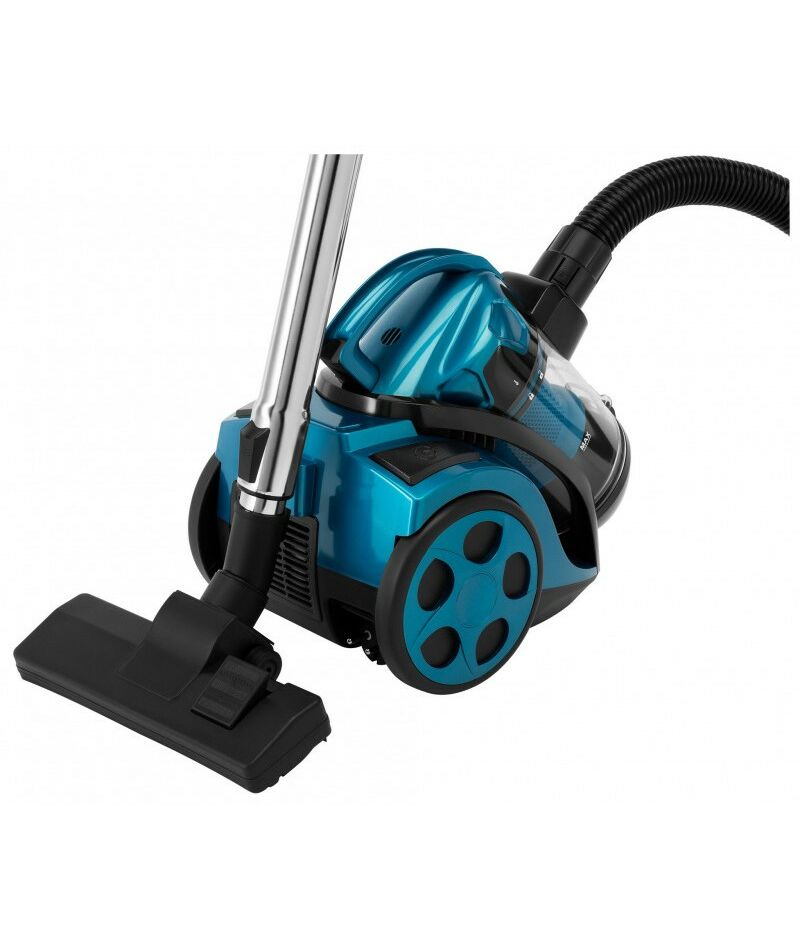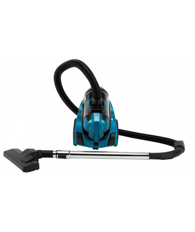- Питание осуществляется от сети 220 В, длина провода составляет 4 метра. Выполнен пылесос в бирюзовом цвете